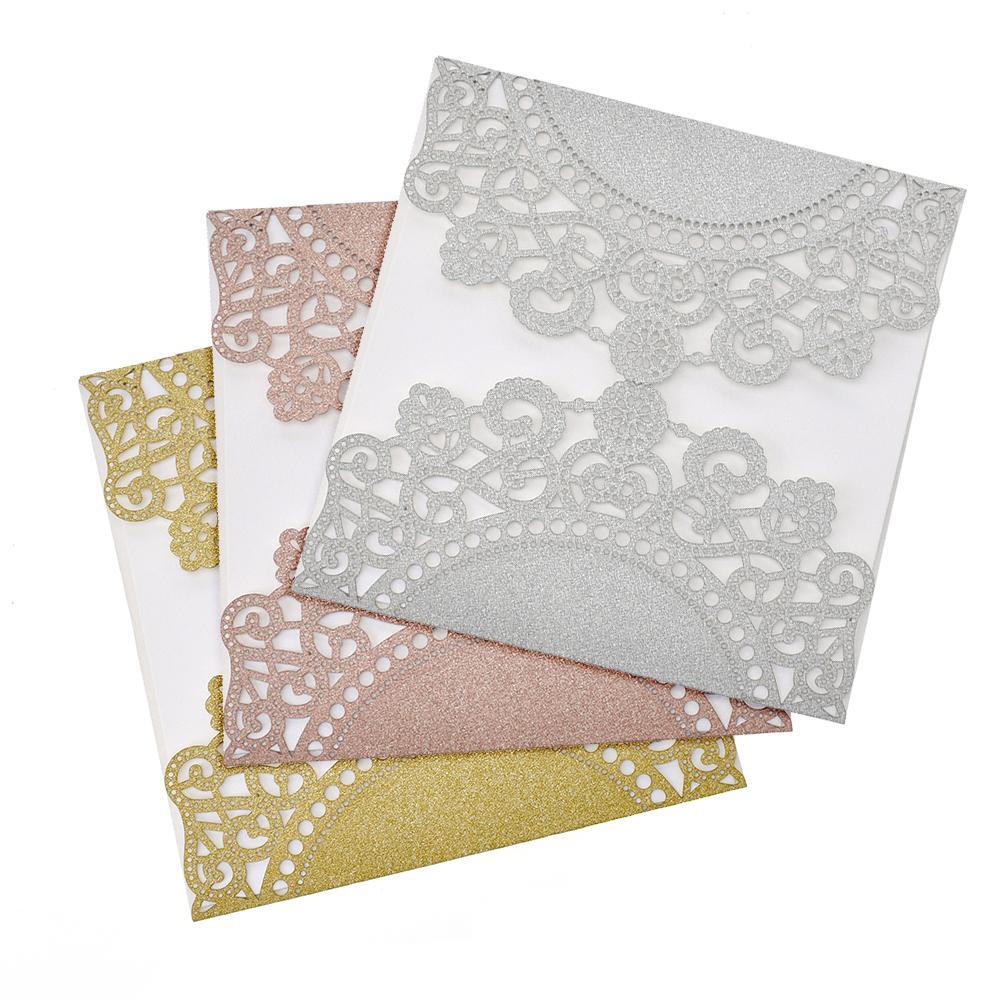 Announce your next special event with these beautiful and elegant invitations. This glitter texture and precise laser cut features make these invitations a great way to commemorate those major events in your life. Perfect for weddings and anniversaries! Invitations are sold in a set. Includes 1 invitation, 1 paper insert, and 1 envelope.