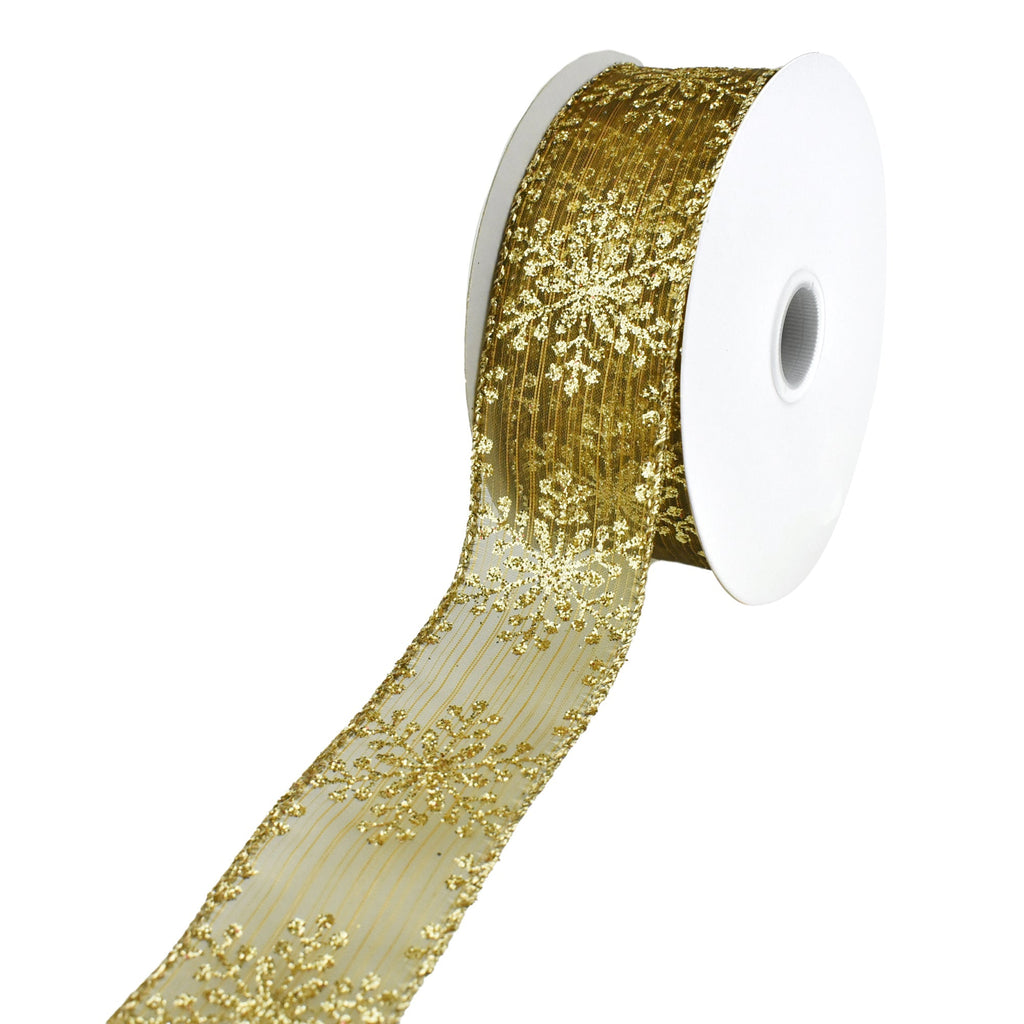 Metallic Glitter Christmas Snowflake, Stripe Sheer Wired Ribbon, 1-1/2-Inch, 10-Yard