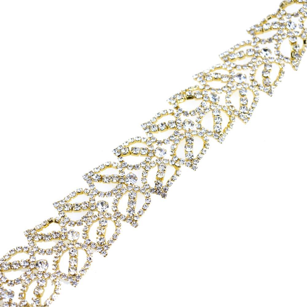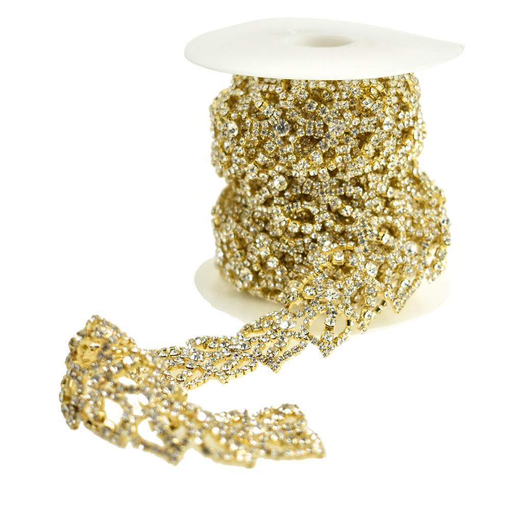 Rose Petal Crystal Rhinestone Jewel Trim, Gold, 1-1/4-Inch, 3-Yard