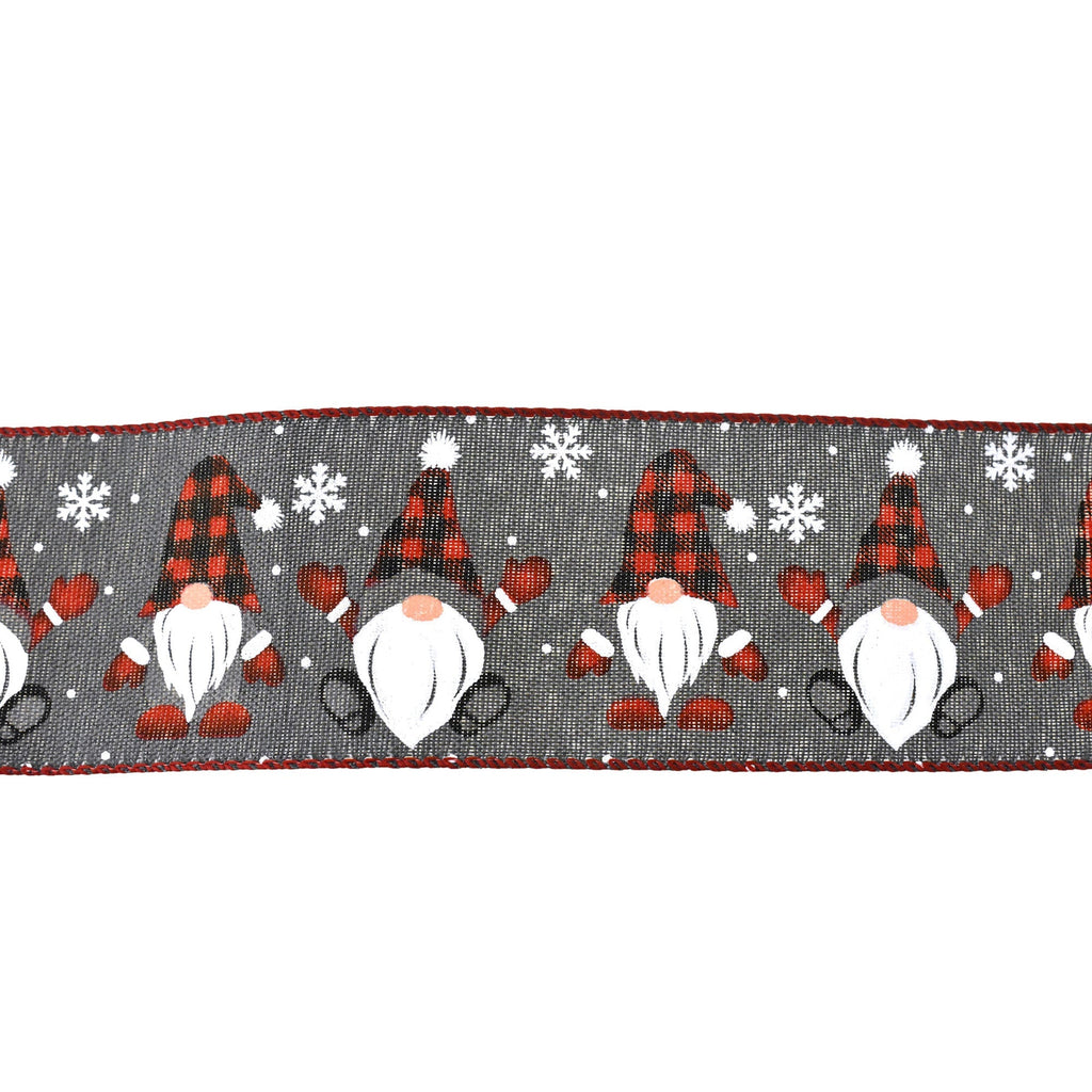 Plaid Dancing Christmas Gnomes Wired Ribbon, 2-1/12-Inch, 10-Yard - Grey