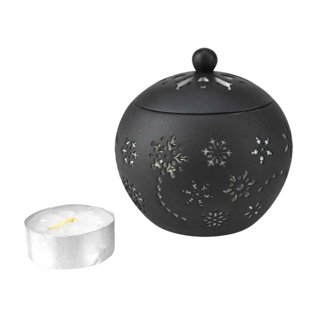 Give your guests a welcoming glow with this vase shaped tea light candle holder! These ceramic candle holders have a winter snowflake design with a versatile grey color so they will work with any style of home decor! They are also perfect for creating a table centerpiece or as an accessory on your bedside table or desk. Length: 3" Width: 3"