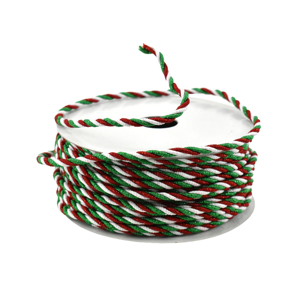 Christmas Glittered Wire Cording, 1/8-Inch, 10-Yard - Red/Green/White
