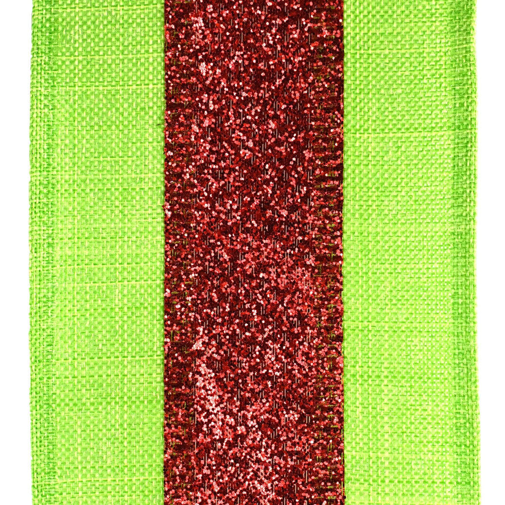 Striped Glitz and Glitter Christmas Wired Ribbon, 2-1/2-Inch, 10-Yard - Red/Lime Green