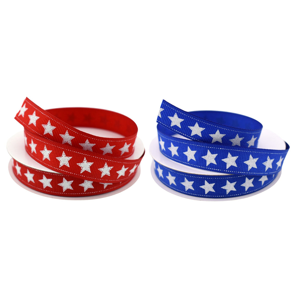 Patriotic Stars Dotted Edge Grosgrain Ribbon, 5/8-inch, 10-yard