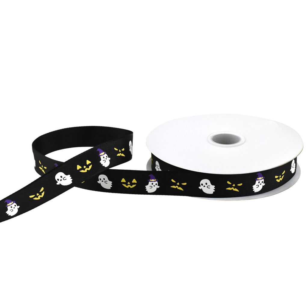 Halloween Pumpkins and Ghosts Satin Ribbon, 5/8-Inch, 10-Yard - Black