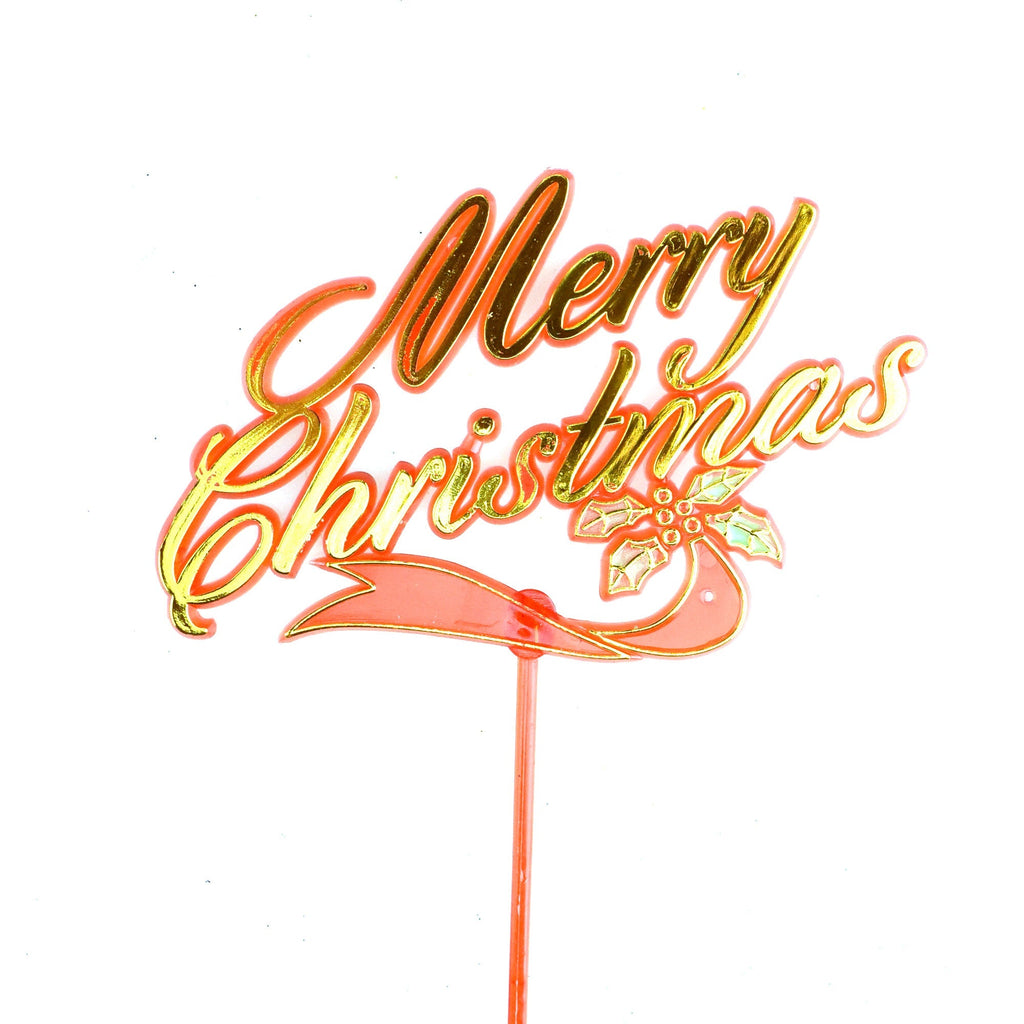 Merry Christmas Party Pick Topper, 12-Inch, 12-Count - Red/Gold