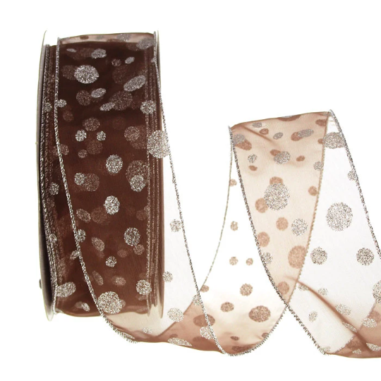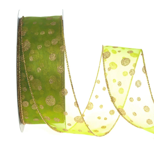 Spot glitter dots of all sizes on this sheer, wired ribbon. fun and festive for decorating the Christmas tree, making bows or wrapping presents. Wired edges make this ribbon perfect for bows, curls, floral projects, decorating and gift wrapping!