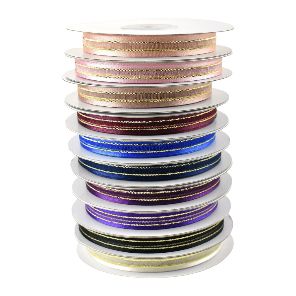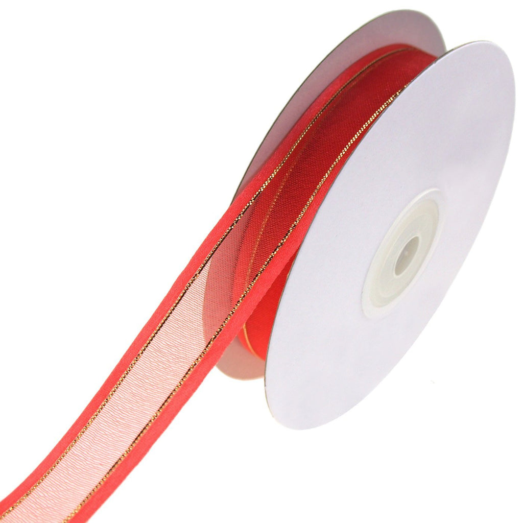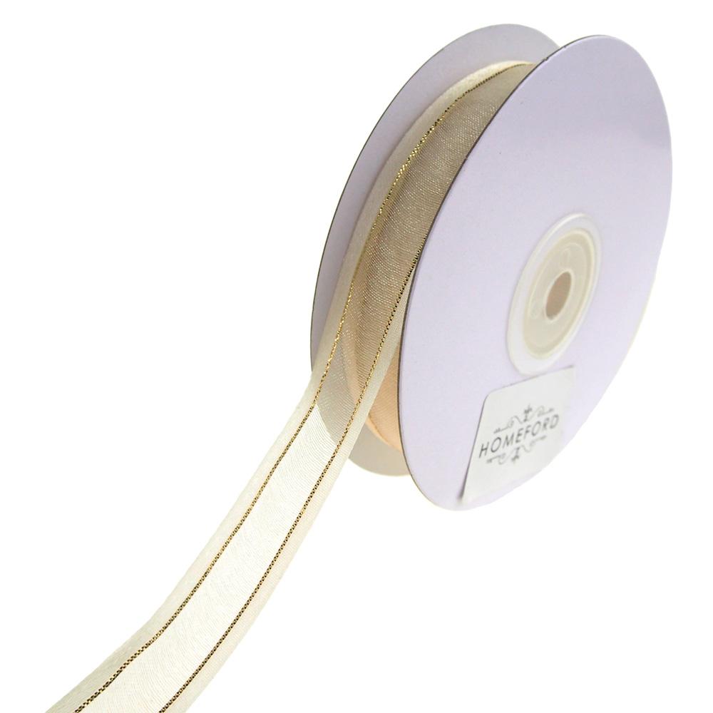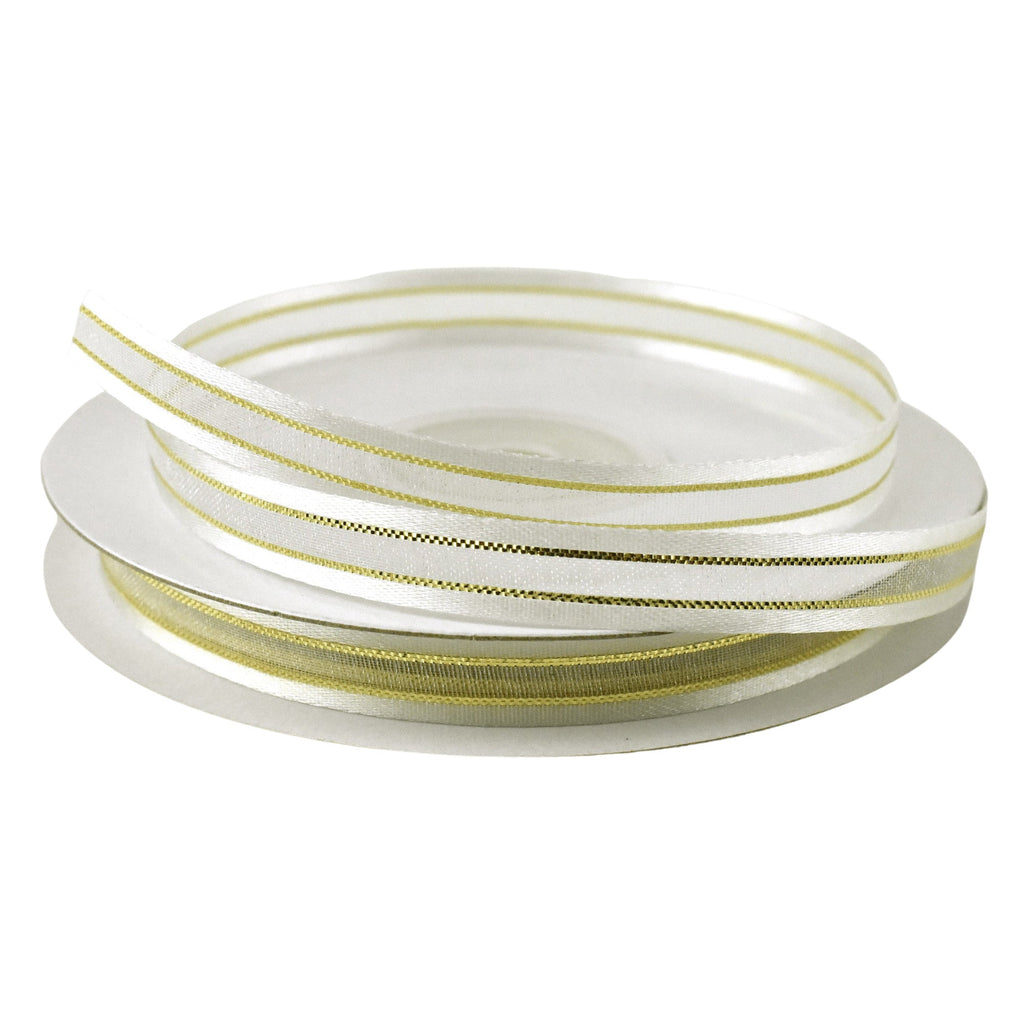 Gold-Lined Satin Edge Organza Ribbon, 25-yard