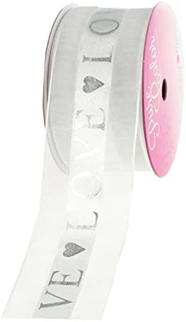 Express your true feelings with this elegant ribbon. Features a silver foil LOVE print and hearts on the center of organza ribbon.