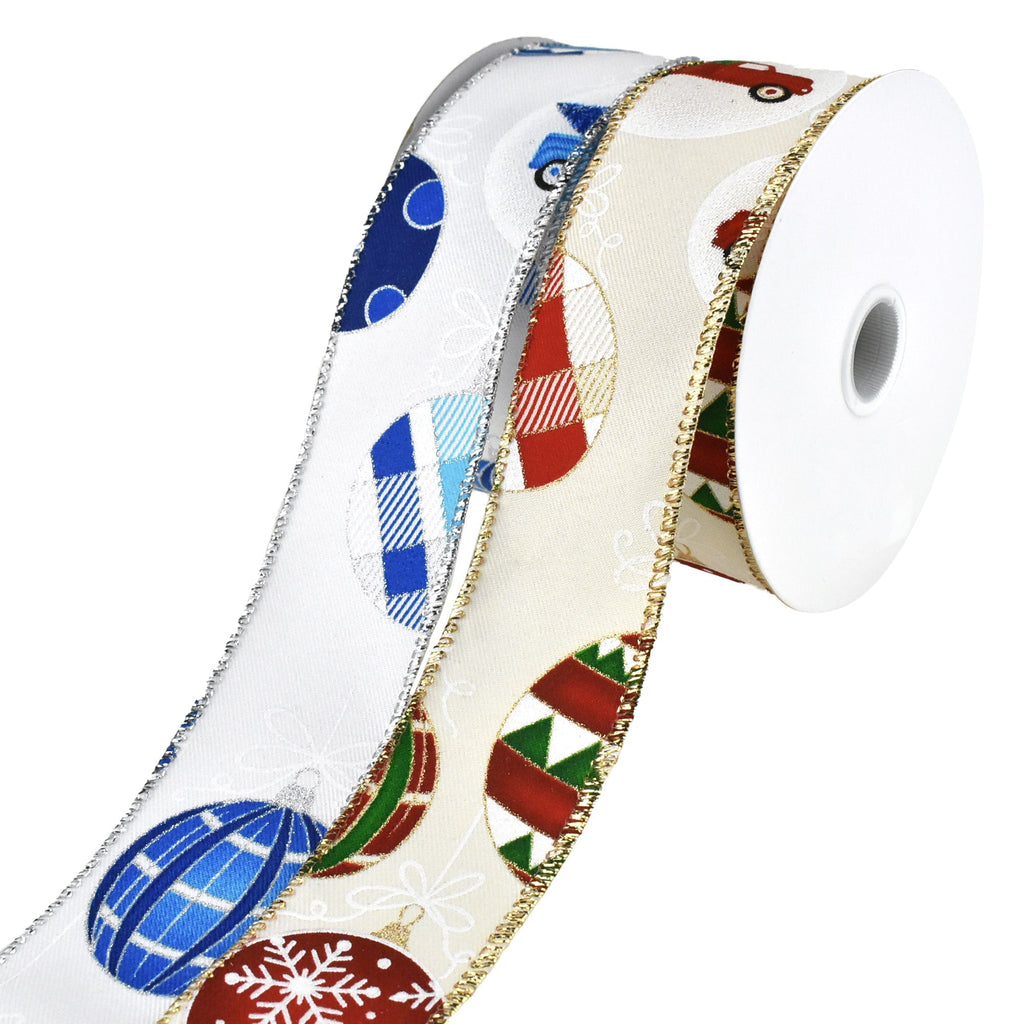 Christmas Ornaments Wired Ribbon, 1-1/2-Inch, 10-Yard