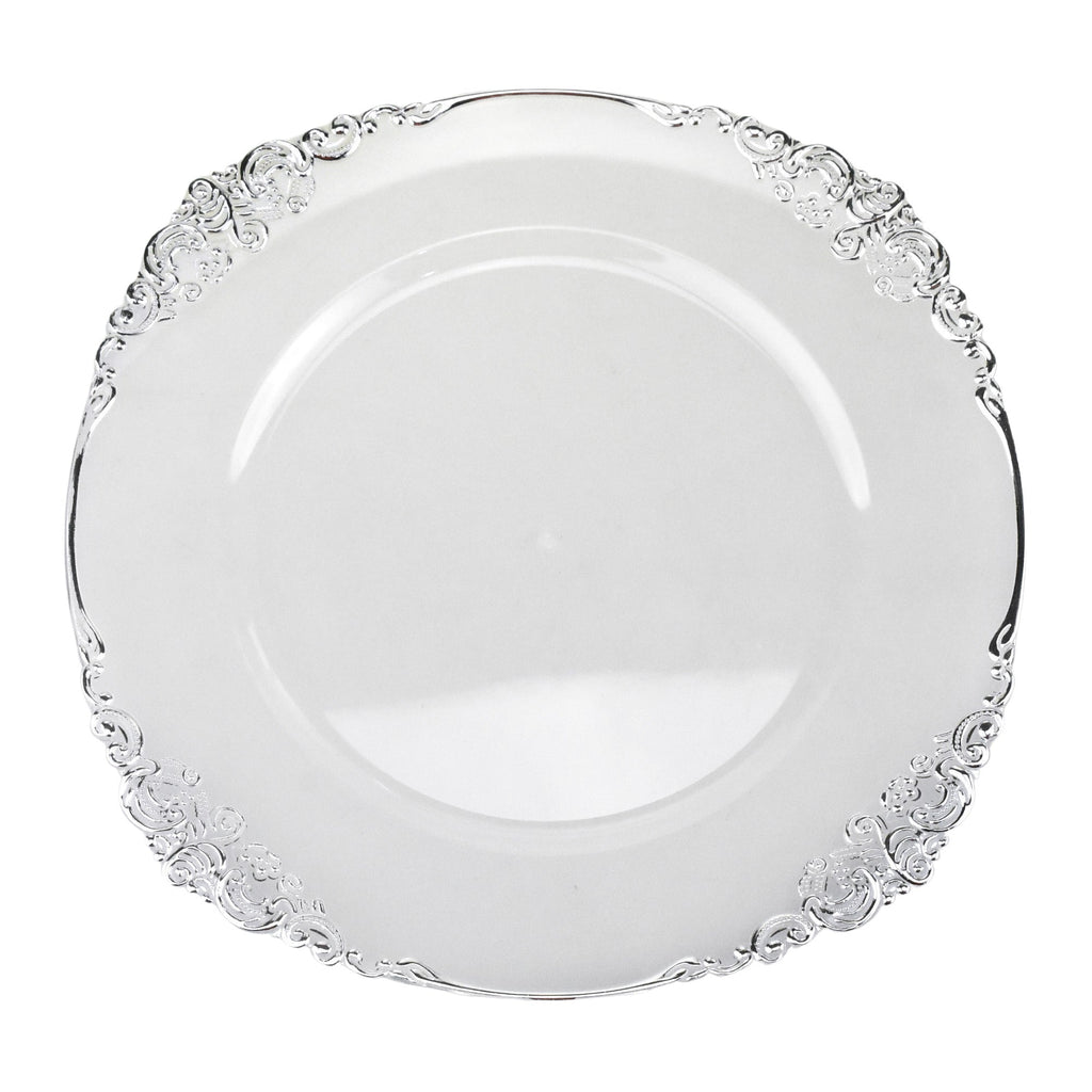 Baroque Edge Clear Round Plastic Charger Plate, 14-inch