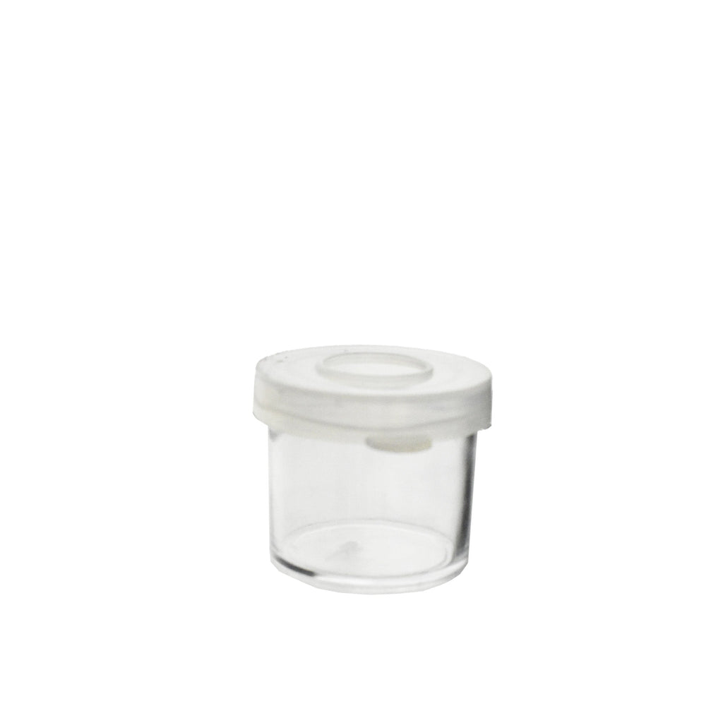 These cups are perfect for storing paint, beads, or any small objects. The small size makes them easy to store and organize. The pack comes with 10 cups each with their own non-spill lids. Length: 1" Width: 1.1"
