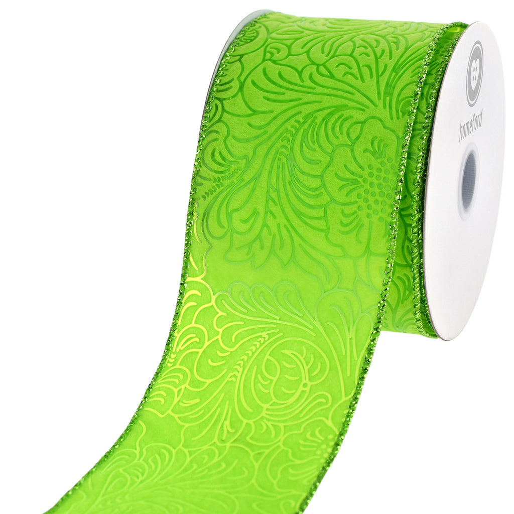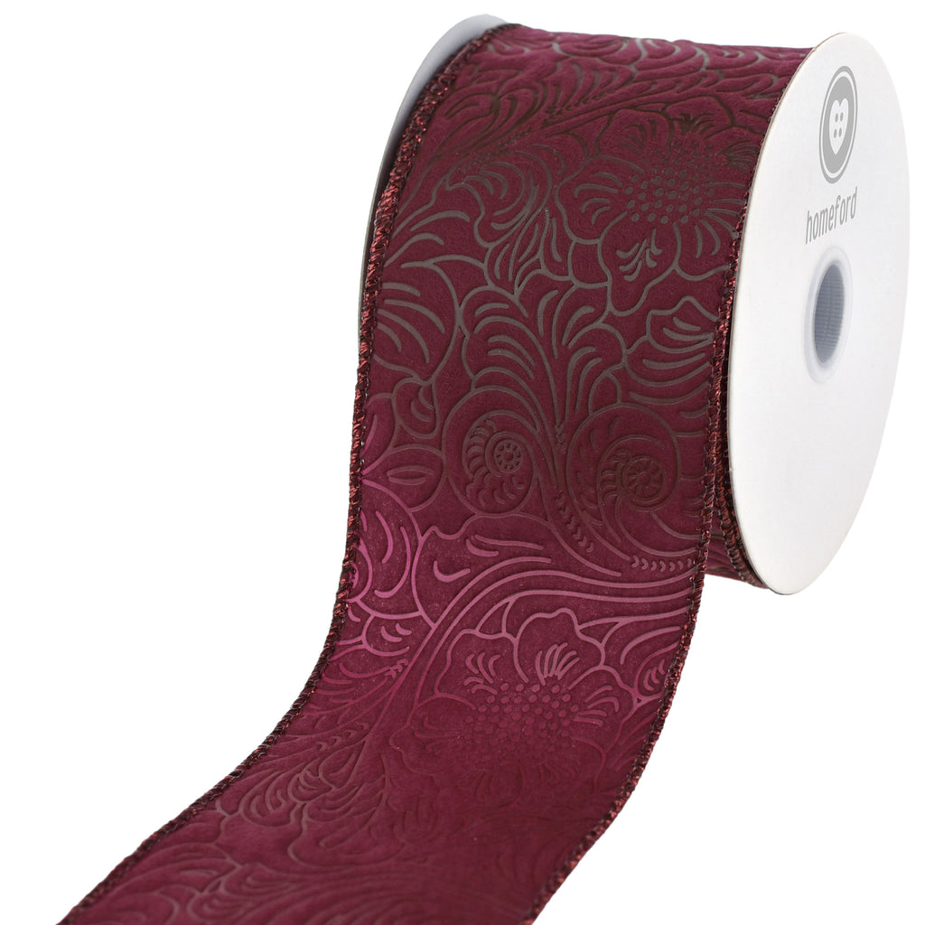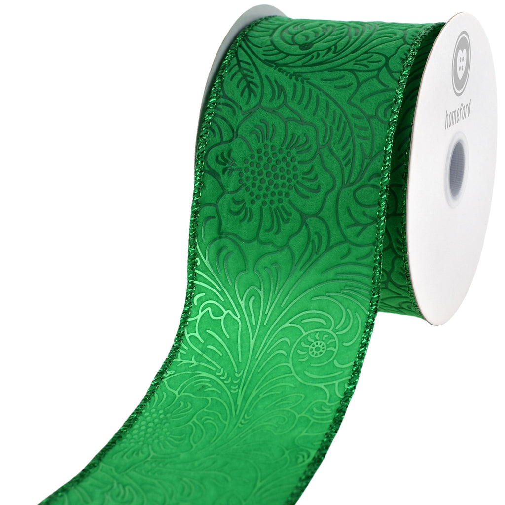 Embossed Flowers Polypropylene Wired Ribbon, 10-yard