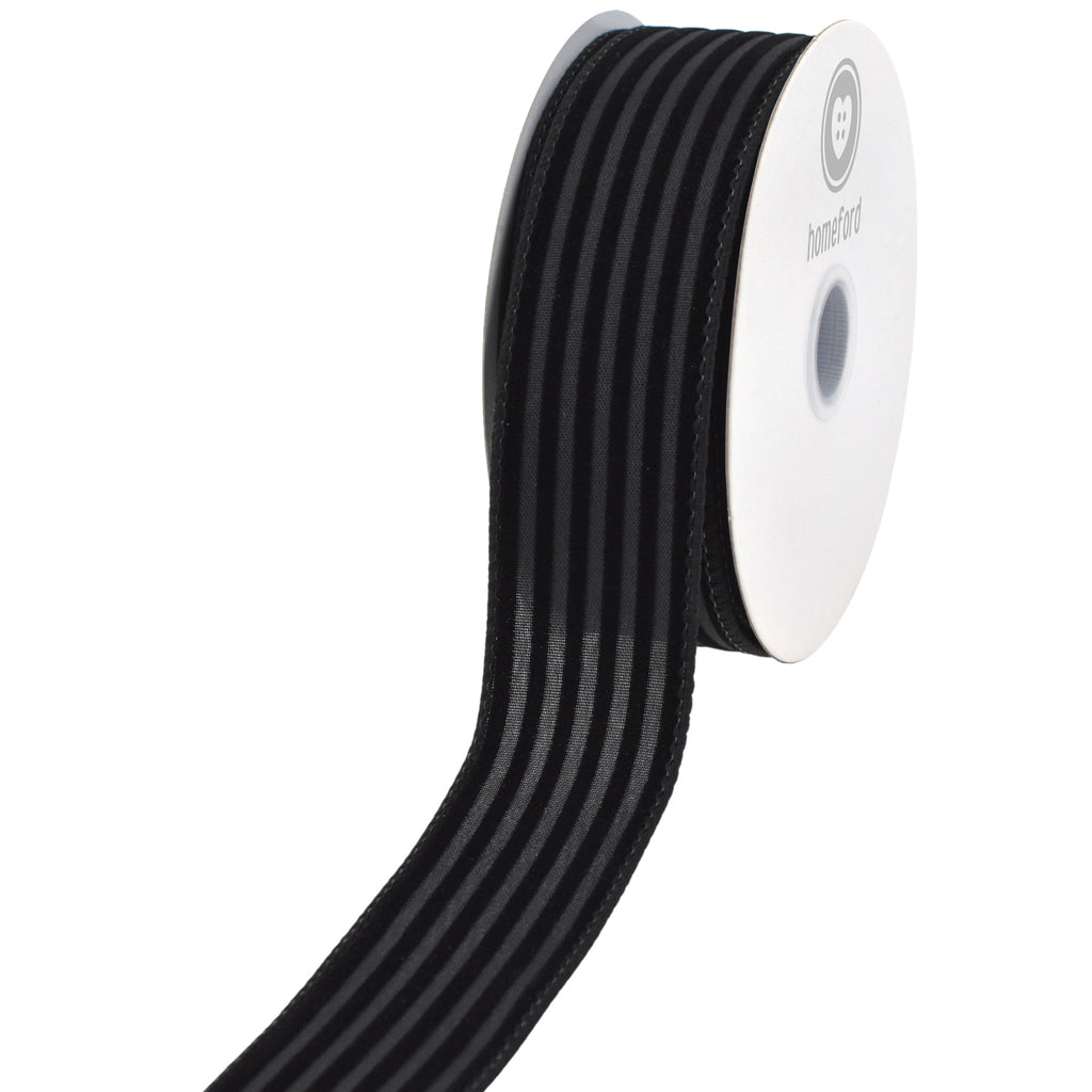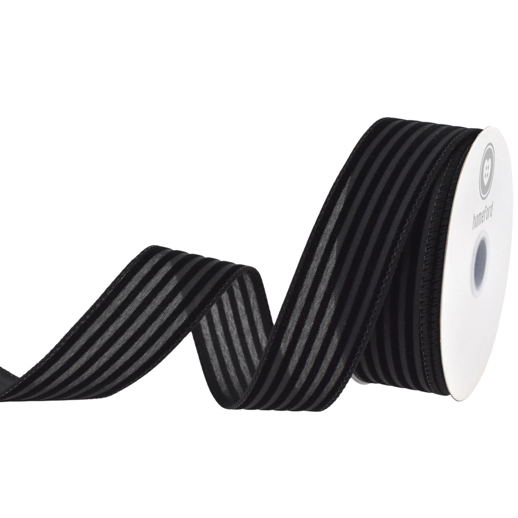 Flocked Thin Cabana Stripes Wired Ribbon, 1-1/2-inch, 10-yard