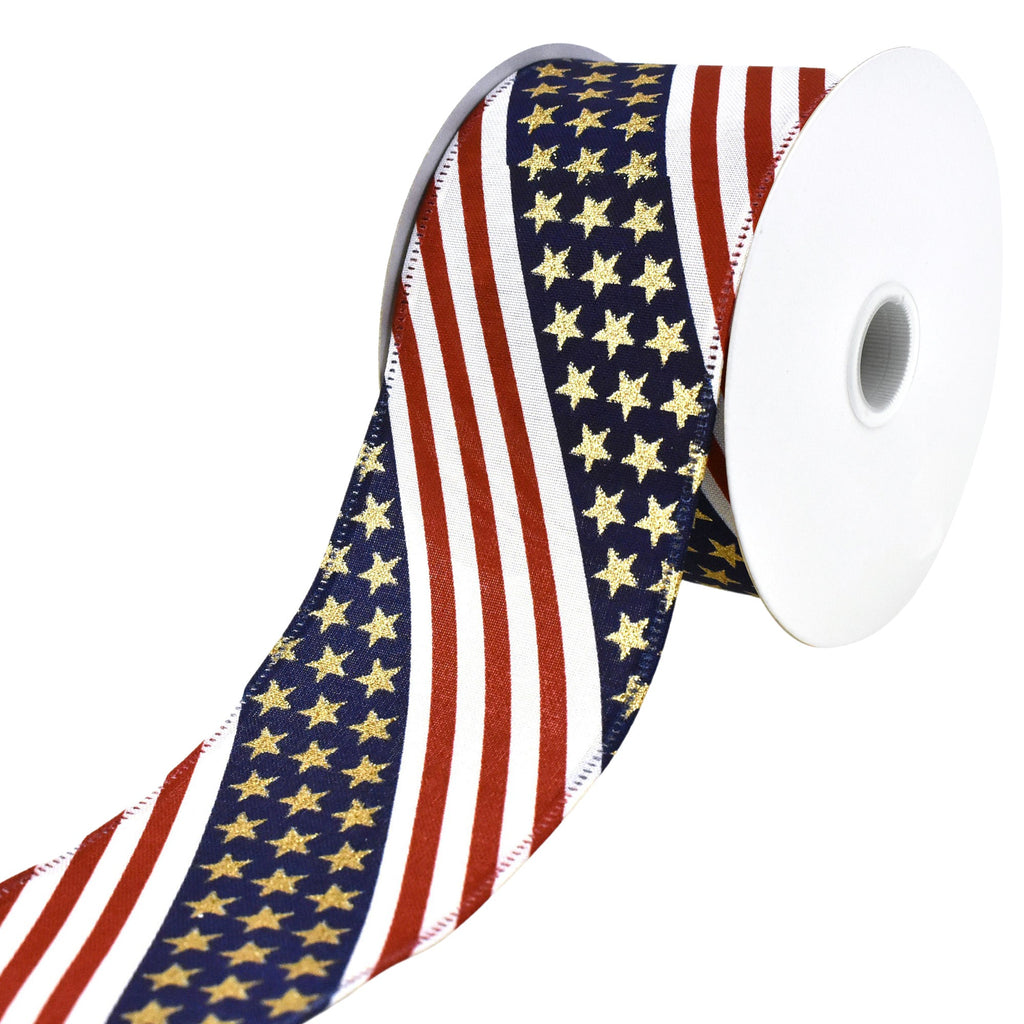 Patriotic Stars and Stripes Diagonal Flag Wired Ribbon, 10-Yard