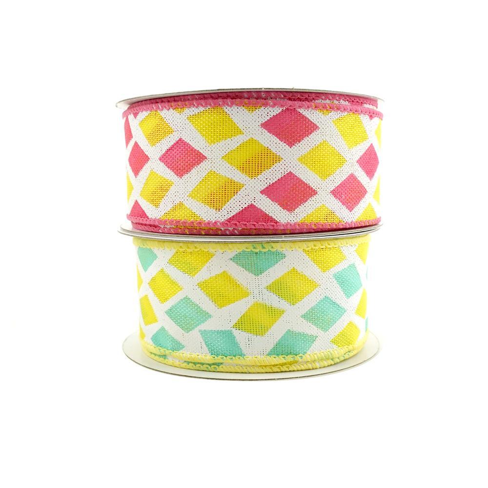 Add your own personal touch to any project! This ribbon features two toned harlequin design, which is perfect for Spring/Summer season. Take your decorating or DIY to the next level! Note: Contains wire.