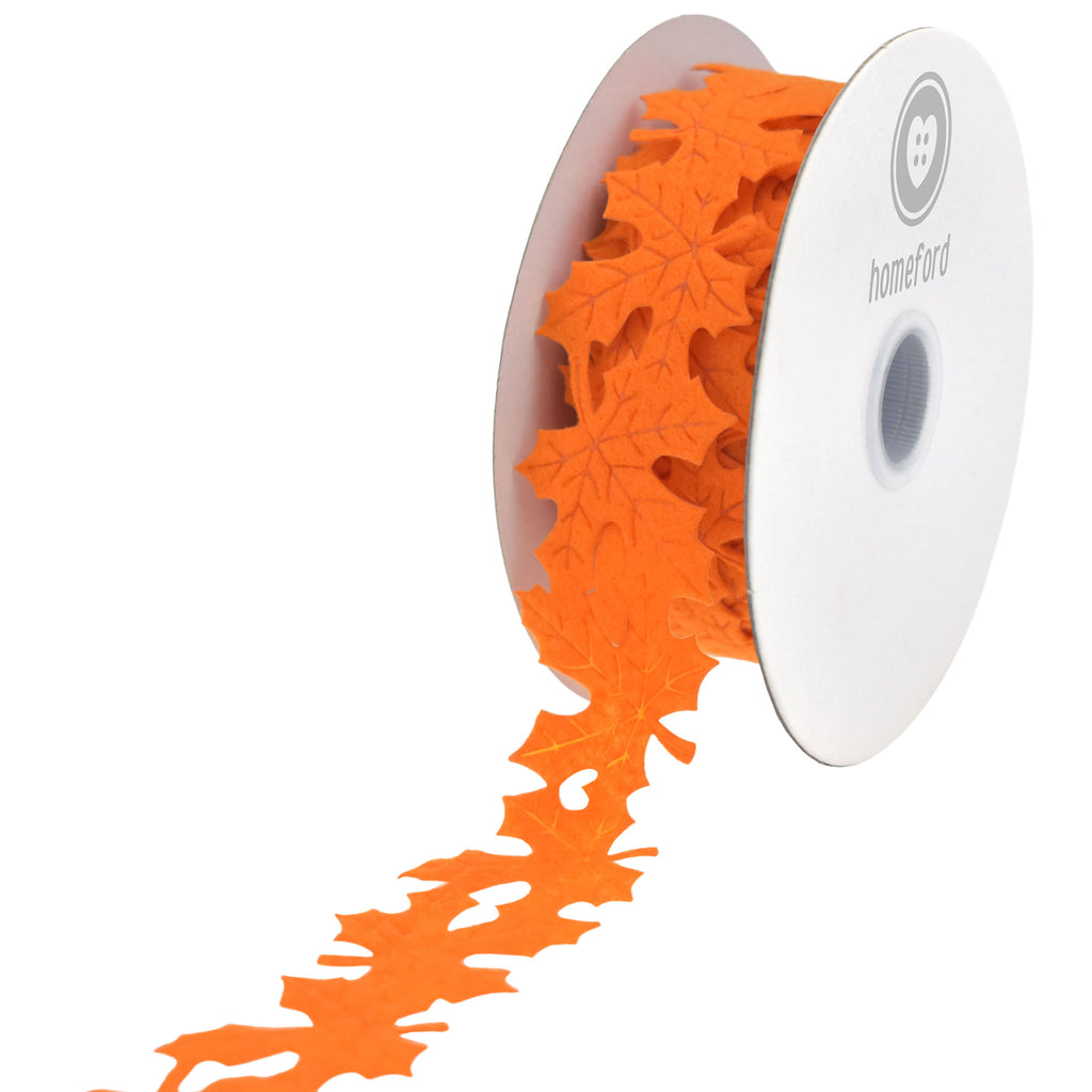 Fall Leaves Felt Cutout Ribbon, Orange, 1-1/2-inch, 10-yard