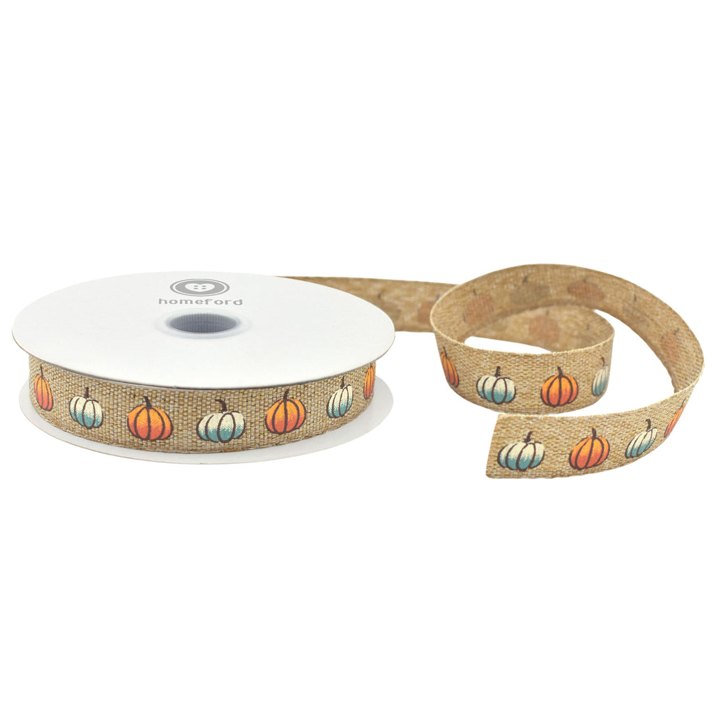 Fall Pumpkins Faux Linen Ribbon, 10-yard