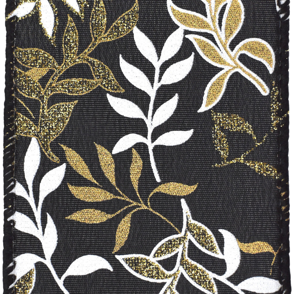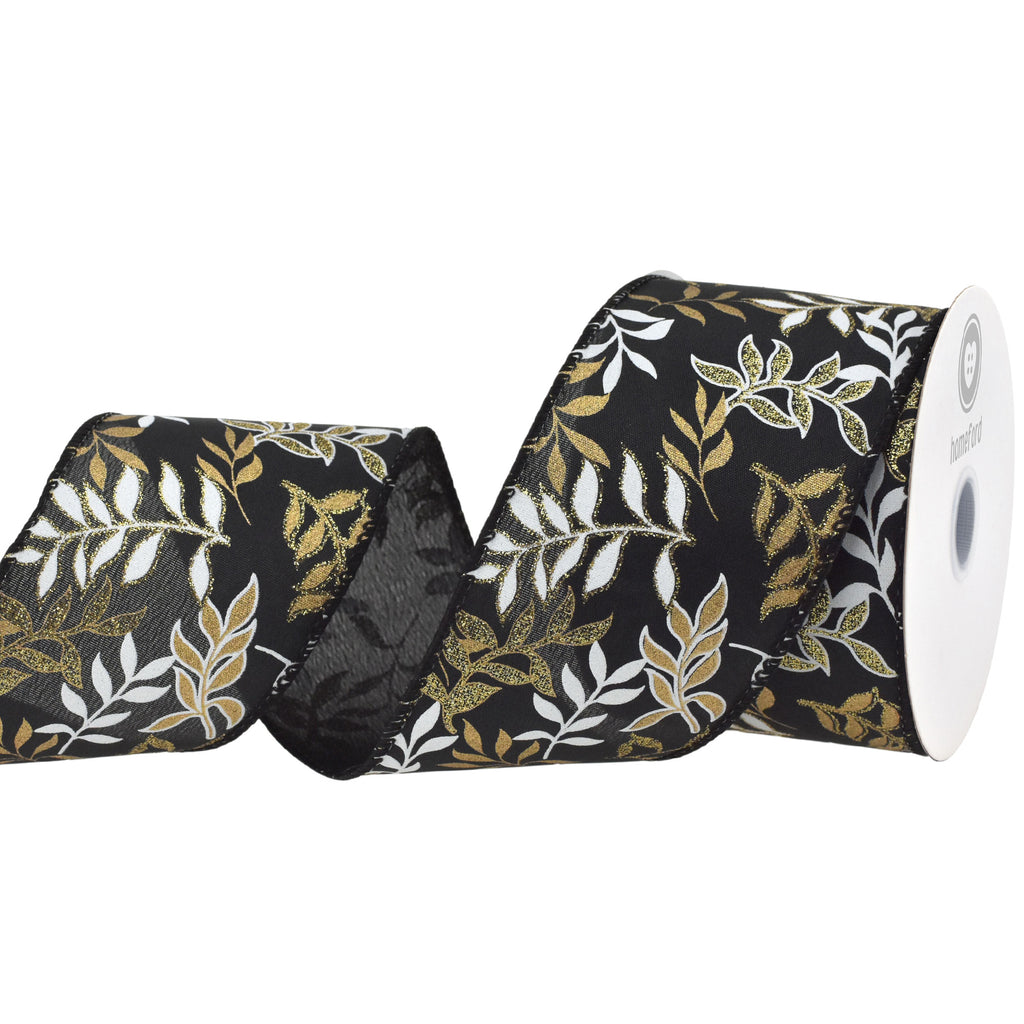 Christmas Pressed Branches Satin Wired Ribbon, 2-1/2-inch, 10-yard