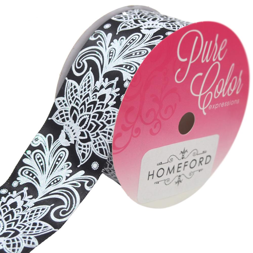 Glitter Floral Lace Satin Ribbon, 1-1/2-Inch, 3-Yard