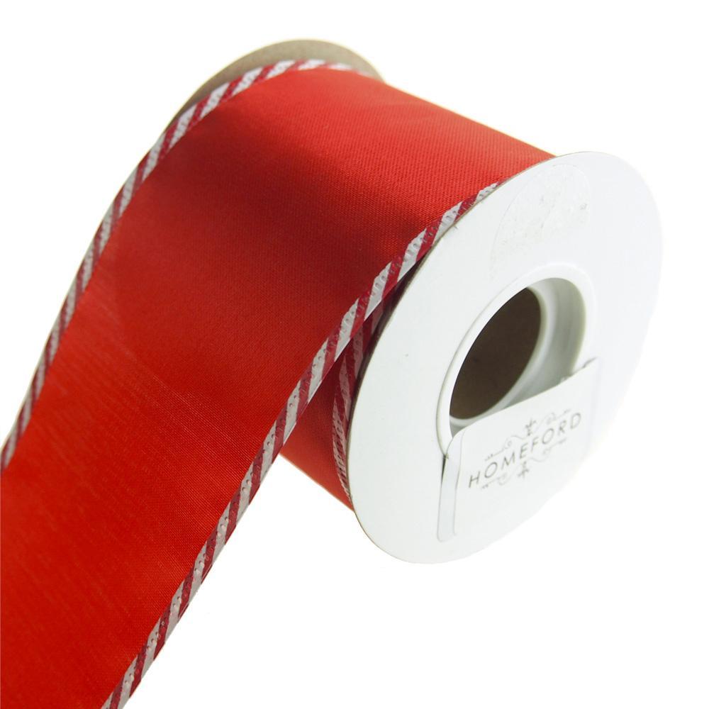 Satin Wired Edge Ribbon with Candy Cane Trim, 10 Yards