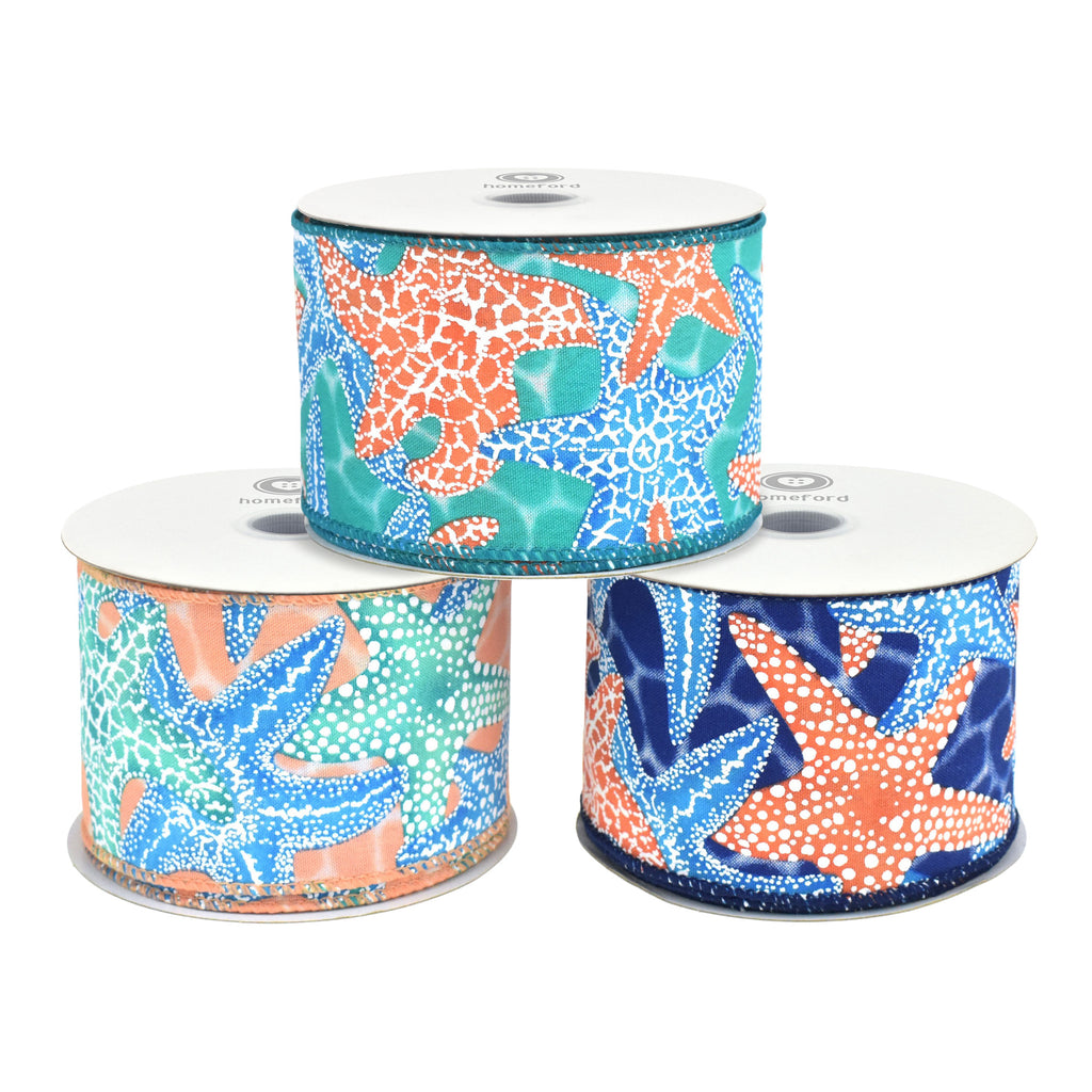 Summer Starfish Satin Wired Ribbon, 2-1/2-inch, 10-yard