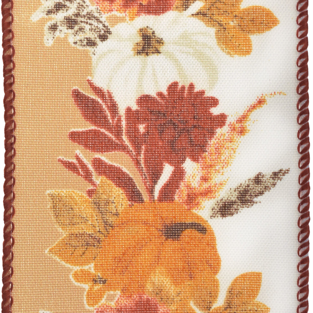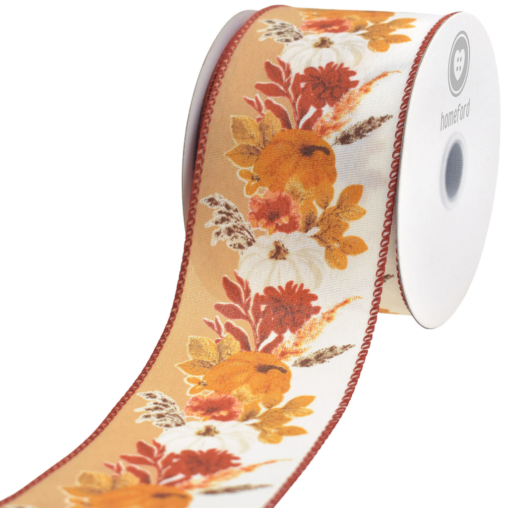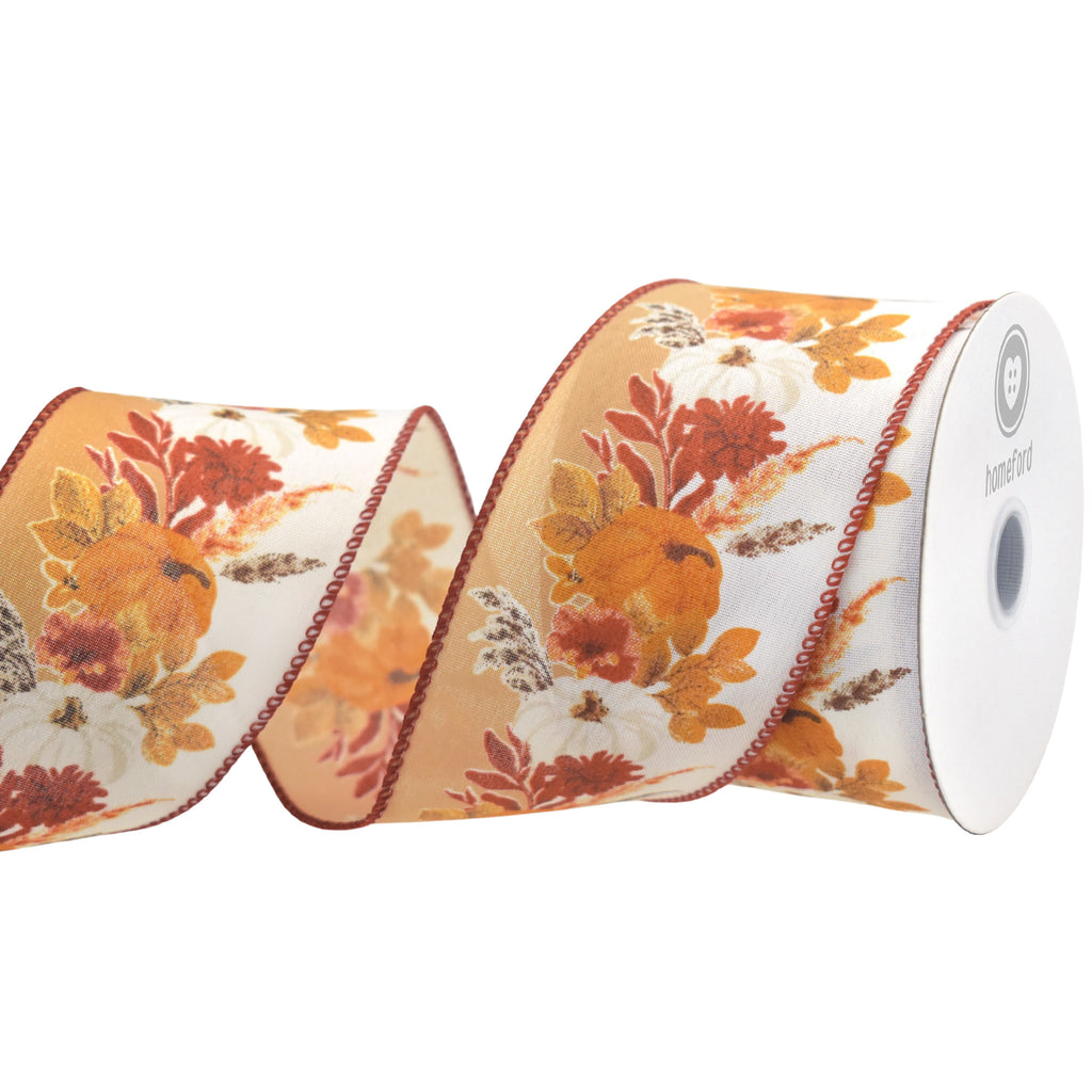 Autumn Pampas Pumpkins Satin Wired Ribbon, 10-yard