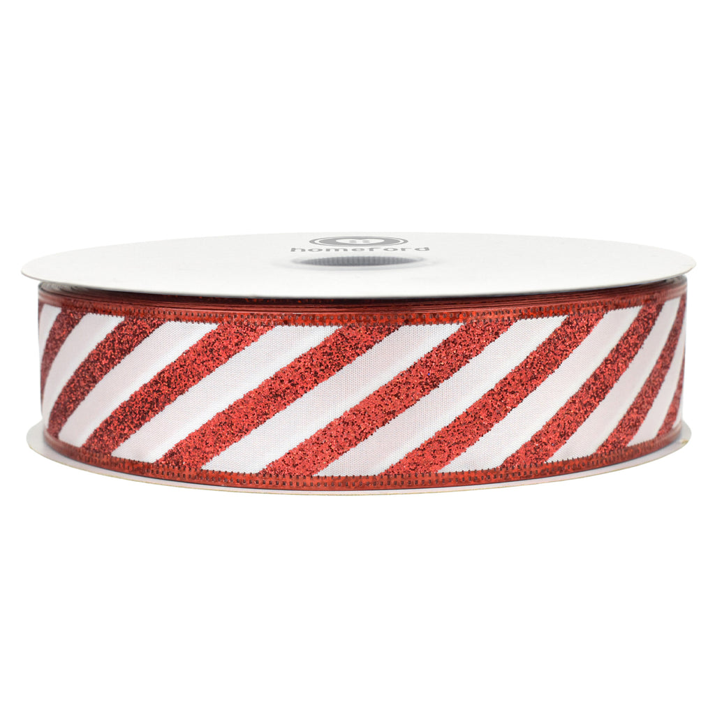 Christmas Glitter Candy Cane Stripes Satin Wired Ribbon, 1-1/2-inch, 50-yard