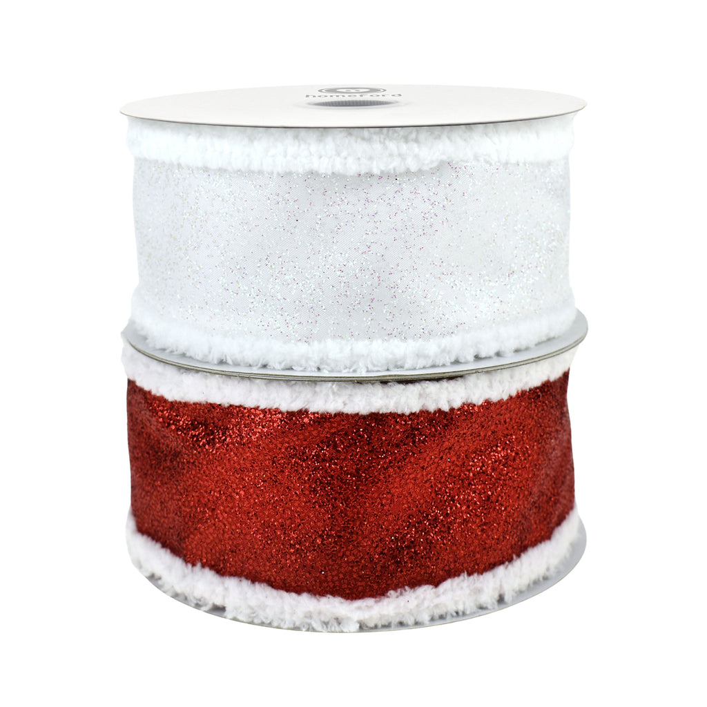 Christmas Glittered Satin Snowball Edge Wired Ribbon, 2-1/2-inch, 10-yard
