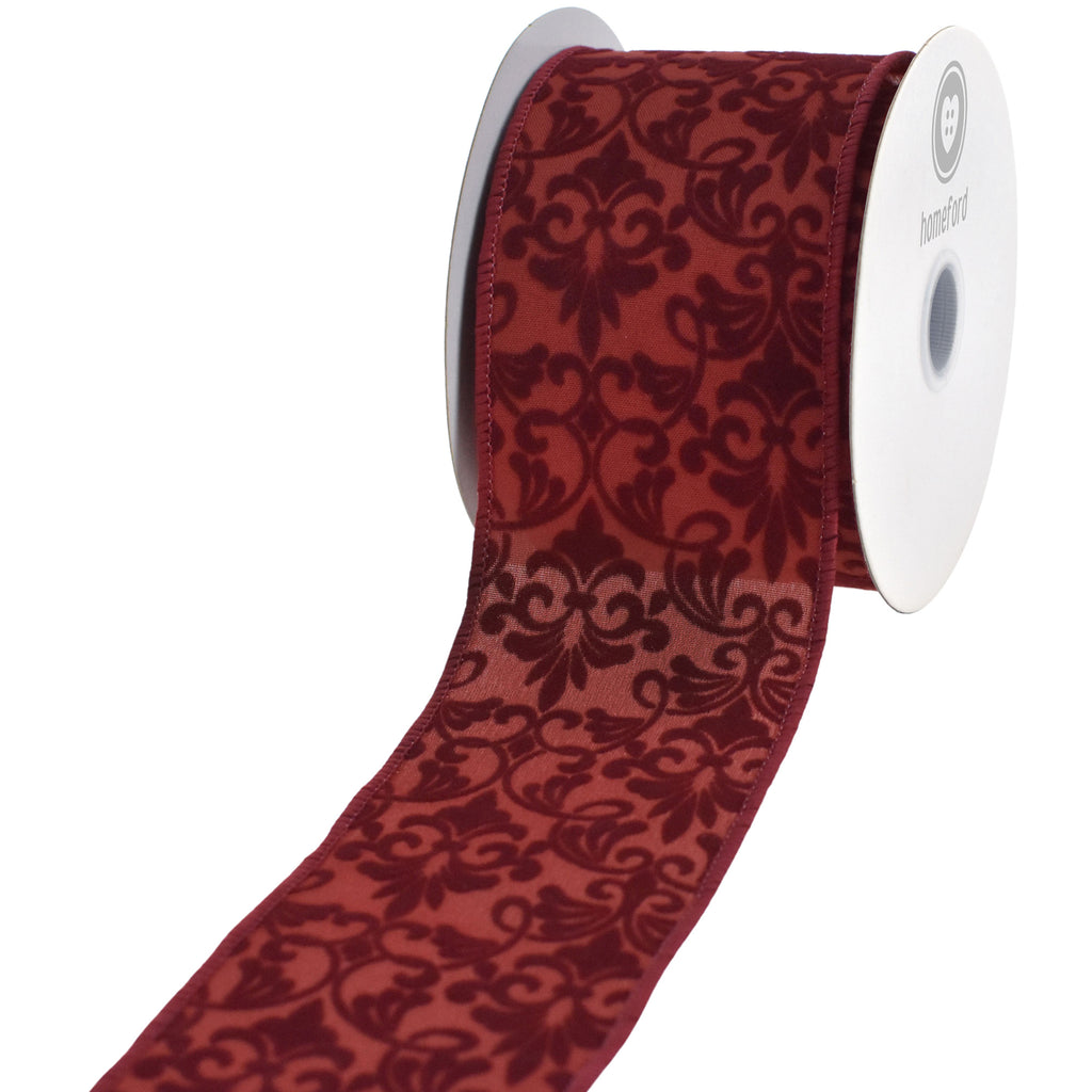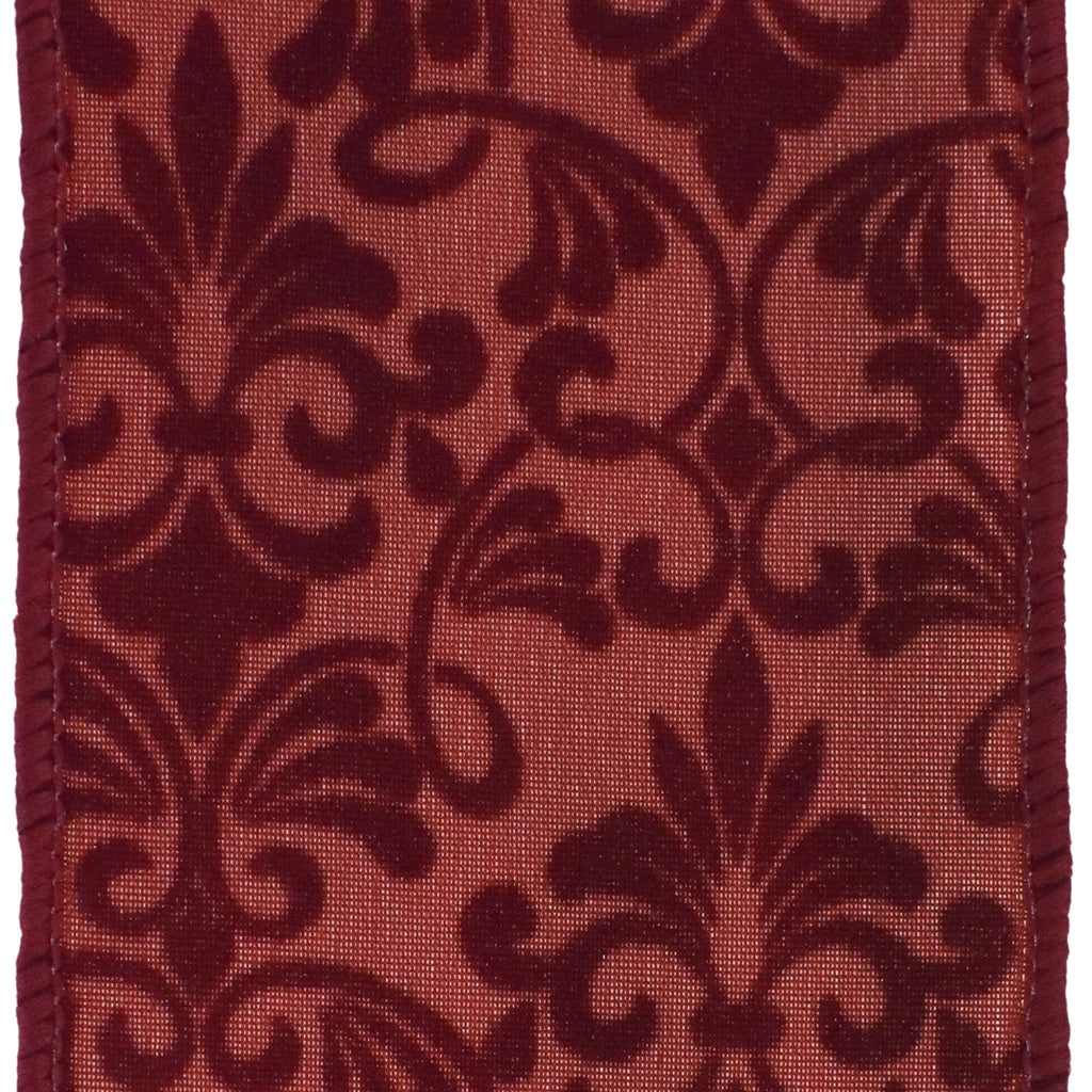 Flocked Damask Pattern Satin Wired Ribbon, 2-1/2-inch, 10-yard