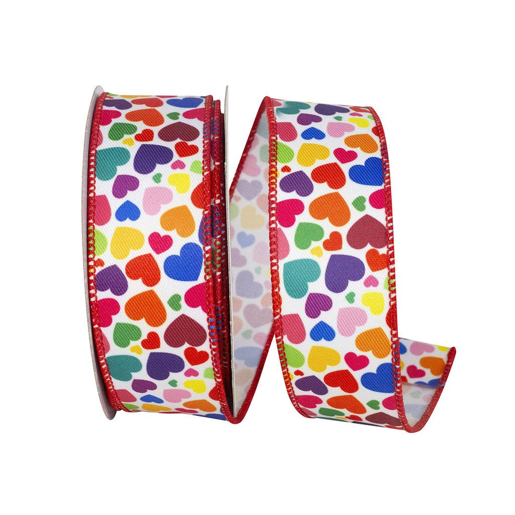 Colorful Rainbow Hearts Twill Wired Ribbon, 10-yard