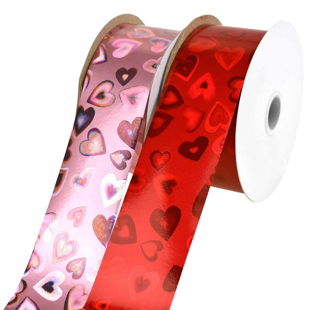 Valentine's Day Holographic Hearts Ribbon, 1-3/8-Inch, 25-Yard