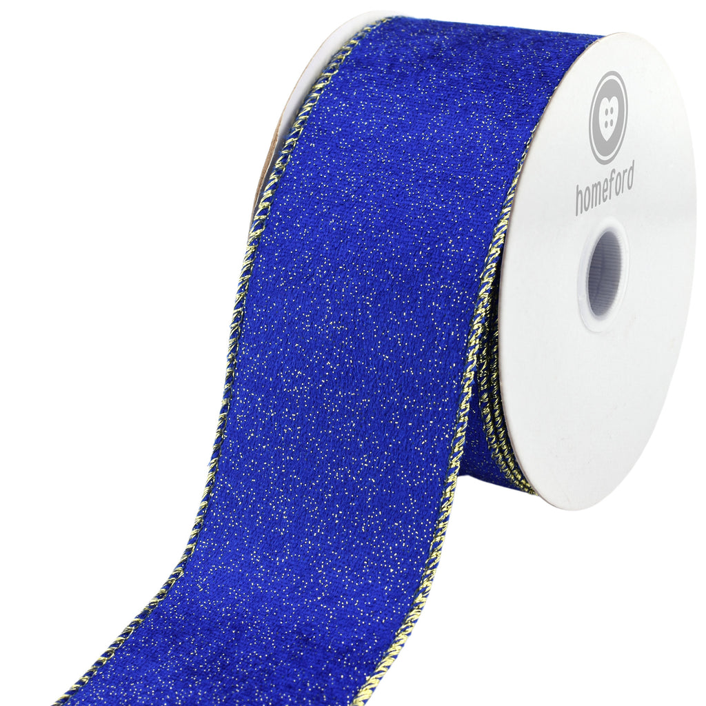 Christmas Velvet Glitter Styled Wired Ribbon, 2-1/2-inch, 10-yard, Royal Blue