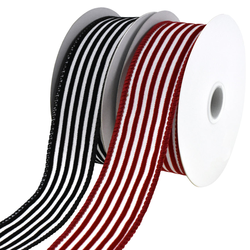 Flocked Velvet Cabana Stripes Wired Ribbon, 1-1/2-Inch, 10-Yard