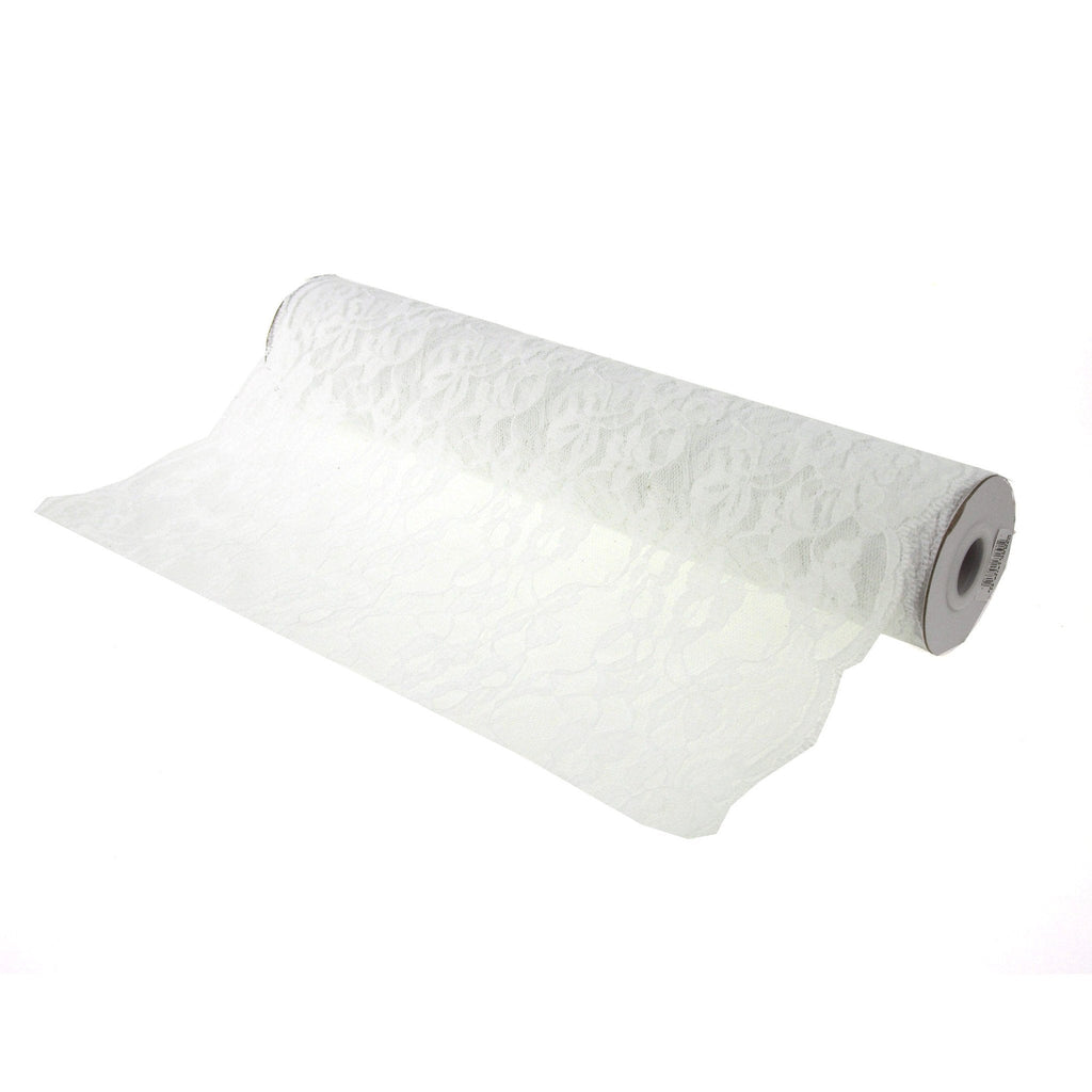 This beautiful floral lace roll adds classic, vintage charm to your tables! Use as a base for a linear display of candles, glass vases filled with delicate white flowers, or even bowls full of fruit.