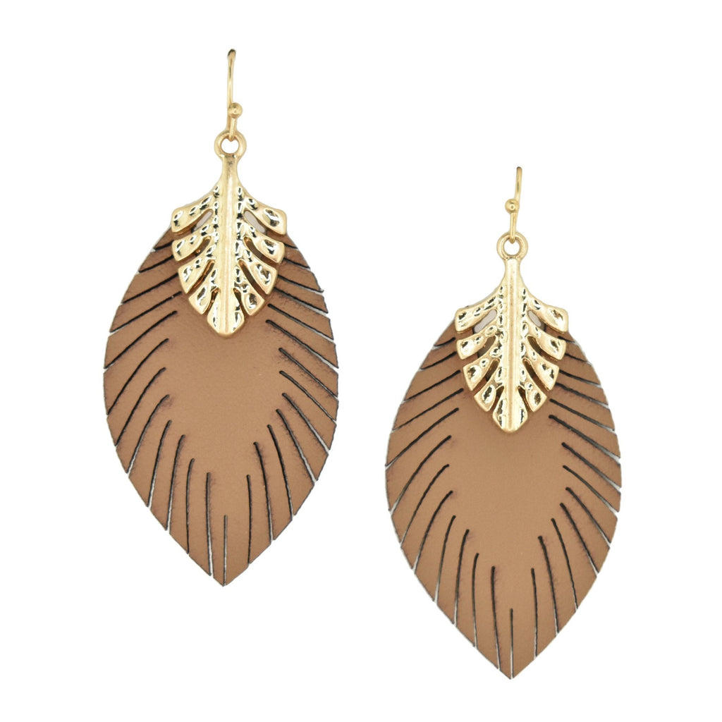 Leather Leaf Shaped Drop Earrings, 2-1/4-Inch