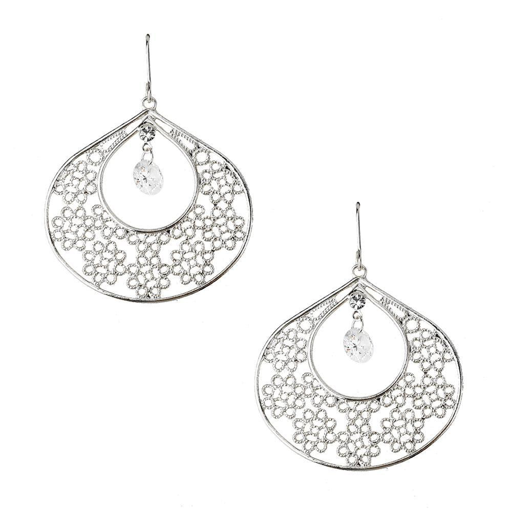Open Filigree Tear Drop Earrings, 1-1/2-Inch