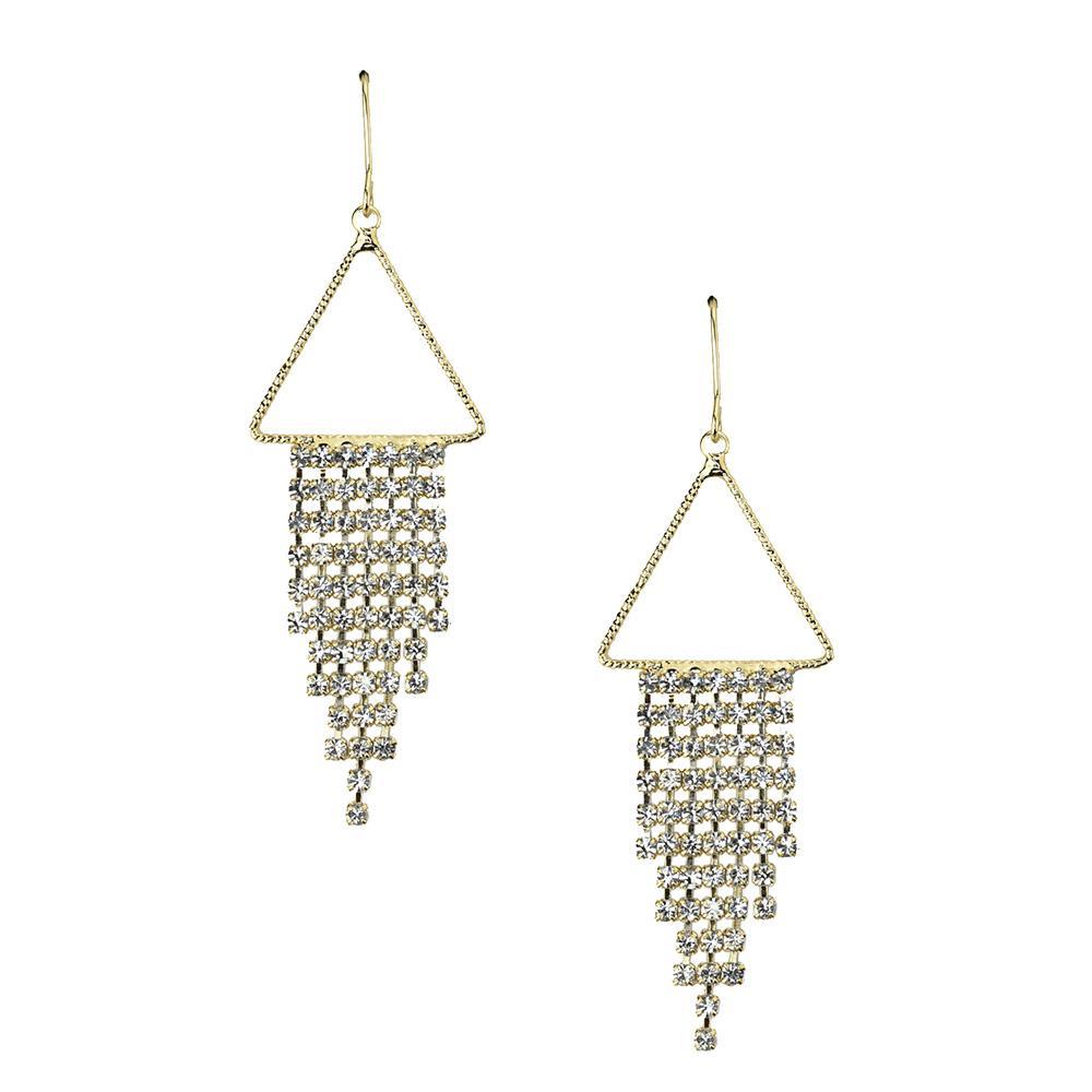 LOVELY DROP EARRINGS - These earrings feature a triangle with chimes, which makes it look more unique and eye-catching. These pair of earrings are gold dipped.