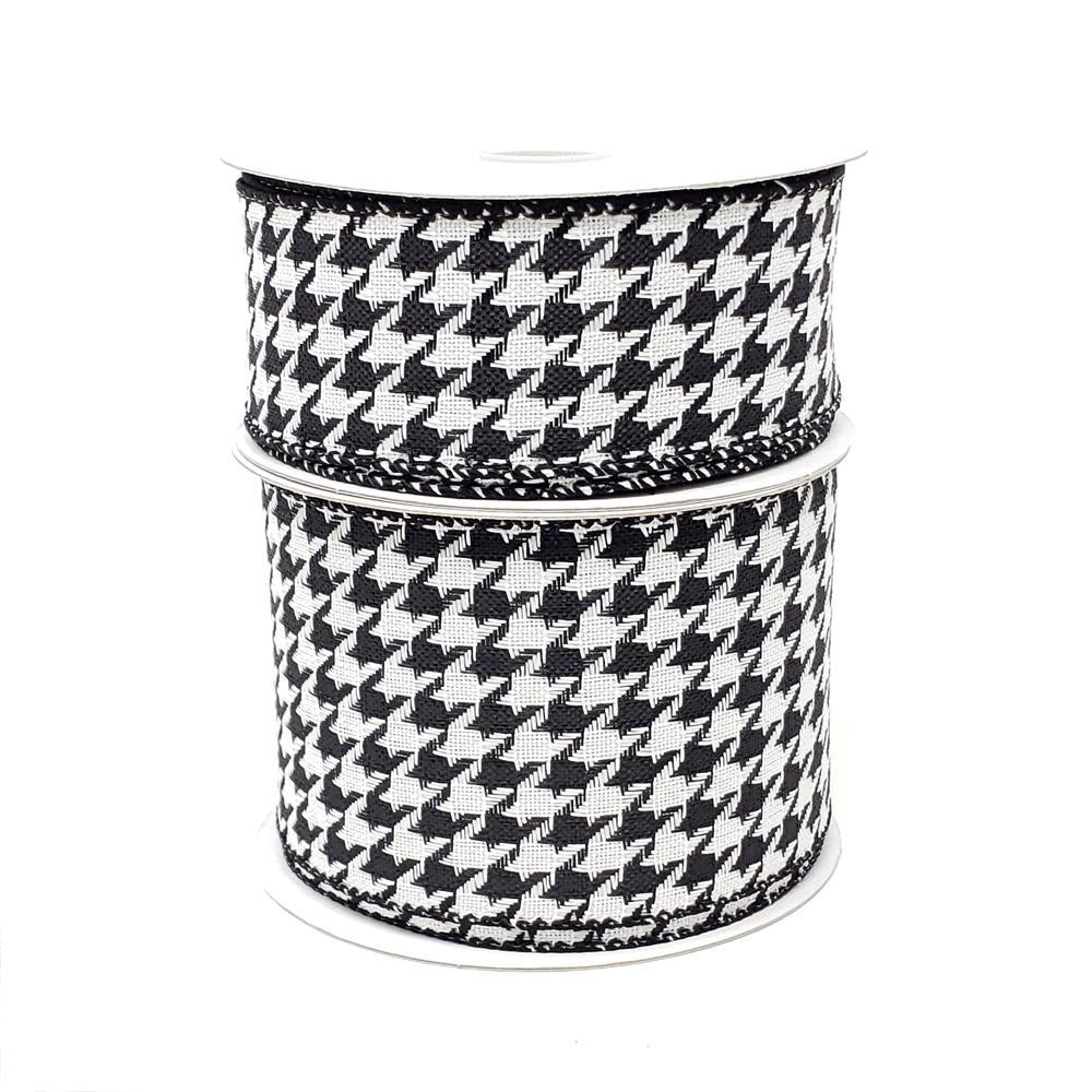 Beautiful ribbon featuring the iconic houndstooth pattern in black and white. Use this ribbon to decorate your tree, gifts, and table centerpieces. Add a unique touch to all your decorations this season with this houndstooth print ribbon.