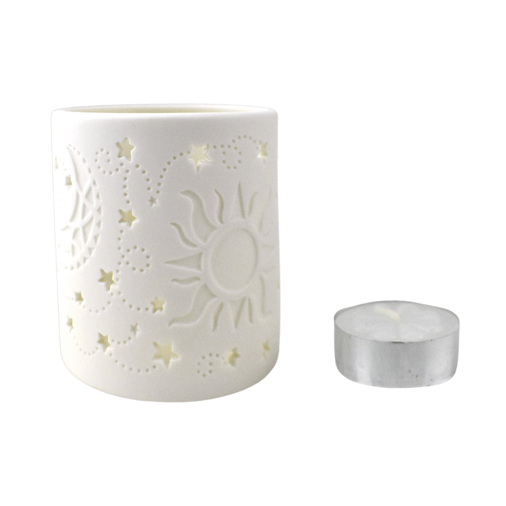 Sun and Moon Cylinder Tea Light Candle Holder, 2-3/4-Inch - White