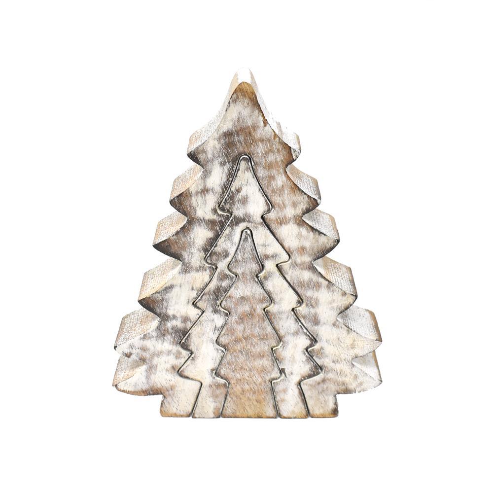 White-Watered Painted Wooden Puzzle Christmas Tree, 7-3/4-Inch