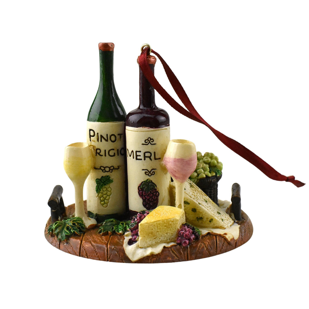 Wine and Cheese Tray Christmas Ornaments, 2-3/4-Inch, 3-Piece